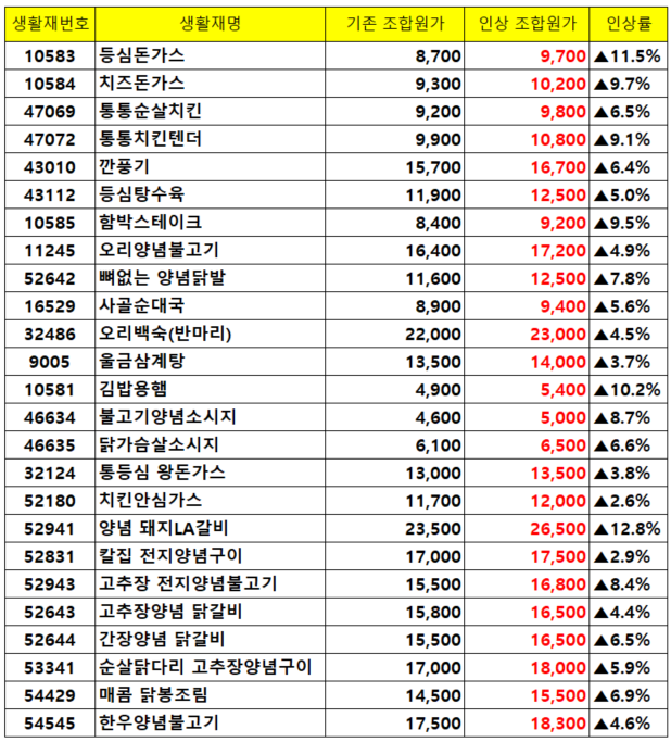 - 원·부자재 및 인건비 상승으로 인한 인상